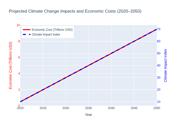 a study by the Potsdam Institute for Climate Impact Research estimates that climate change could cost the global economy $38 trillion annually by 2050, even with immediate emissions cuts. This represents a 19% reduction in global income, with the most severe impacts expected in Africa and South Asia